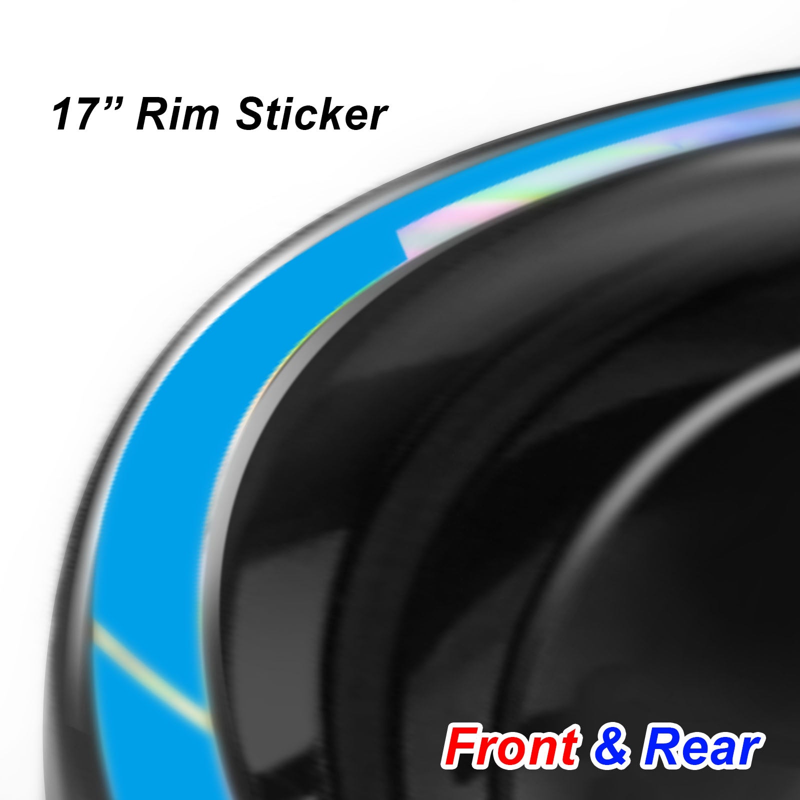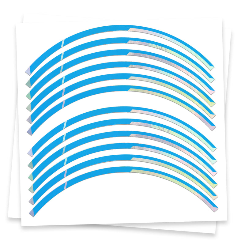 Holographic Silver Rainbow Sticker Tape Universal For 17 inch Wheel Front & Rear Rim Skin Decal Set J01